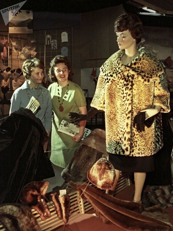 Шуба из овчины. Выставка российских производителей. Москва. Александр Невежин, РИА Новости, 1962 год