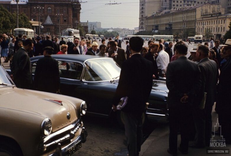 Москвичи рассматривают американский «Кадиллак» модели 1959 г., 1962 год