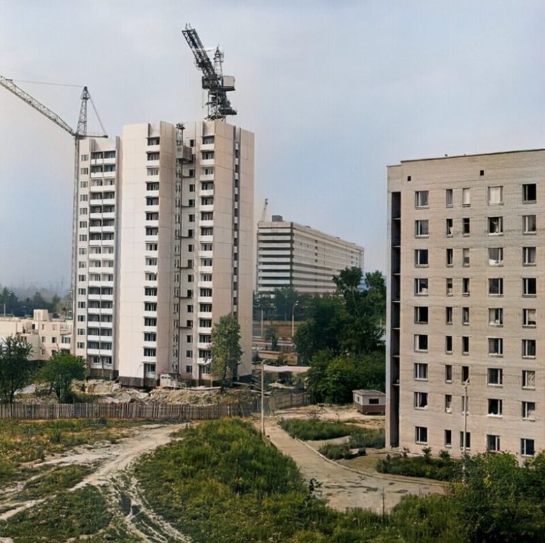 Орехово-Борисово Южное, 1977 год. На заднем фоне строится поликлиника №166