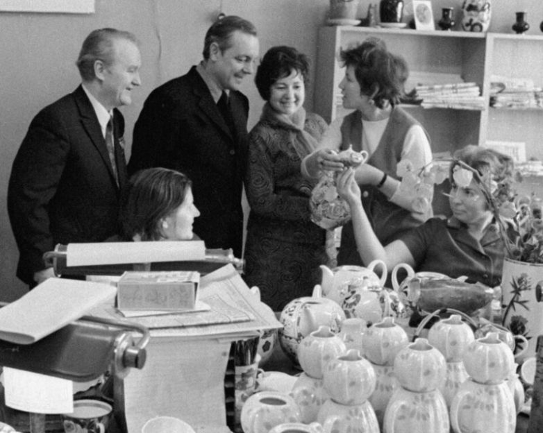 Кирилл Лавров рядом с Людмилой Макаровой в цехе готовой продукции фарфорового завода им. М. Ломоносова, 1981 год
