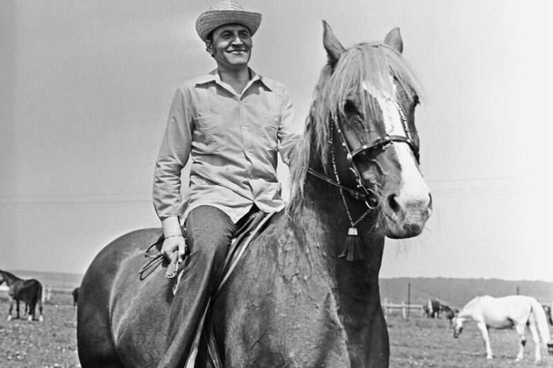 Александр Абдулов и Ирина Алферова на арене Московского цирка во время подготовки новогодней передачи «Аттракцион», 1982 год