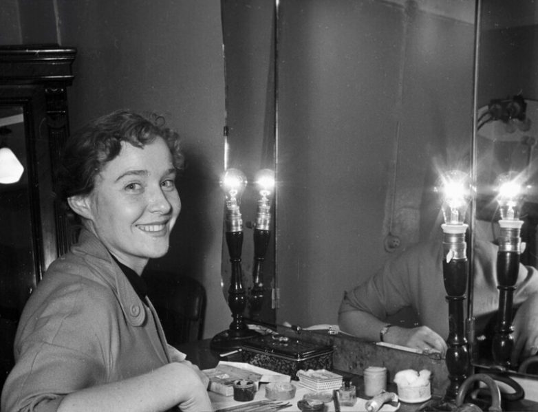 Актриса Руфина Нифонтова в гримерной перед началом спектакля, 1958 год