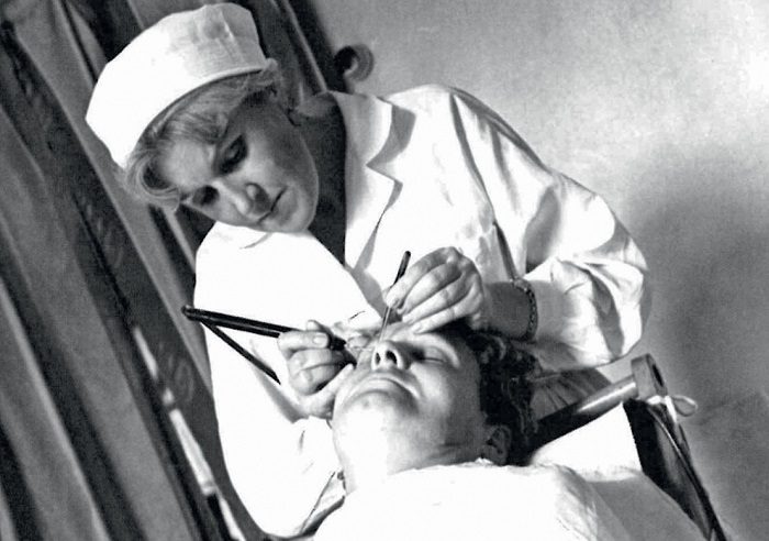 Именно Институт косметики и гигиены стал местом, где был заложен фундамент советской пластической хирургии. Причём происходило это довольно рискованно: операции в первые годы носили экспериментальный характер, о чём пациентов предупреждали заранее, а проведение их ложилось на хирургов общей практики или челюстно-лицевые хирурги. А дальше медикам помогла набраться опыта, как ни странно, Великая Отечественная война — само собой тогда было совсем не до красоты, однако именно в полевых условиях хирургам приходилось сшивать и даже реконструировать изуродованные ранениями лица солдат и гражданских.