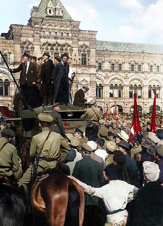 Председатель ВЦИК (формальный глава РСФСР) Яков Свердлов выступает на Красной площади, 1918 год