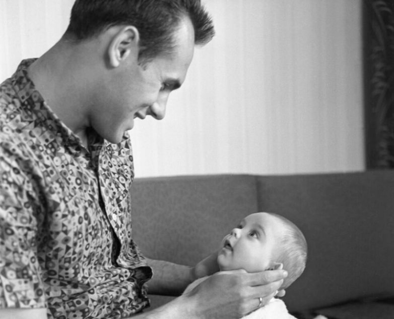 Советский легкоатлет Валерий Брумель с сыном Сашей, 1964 год