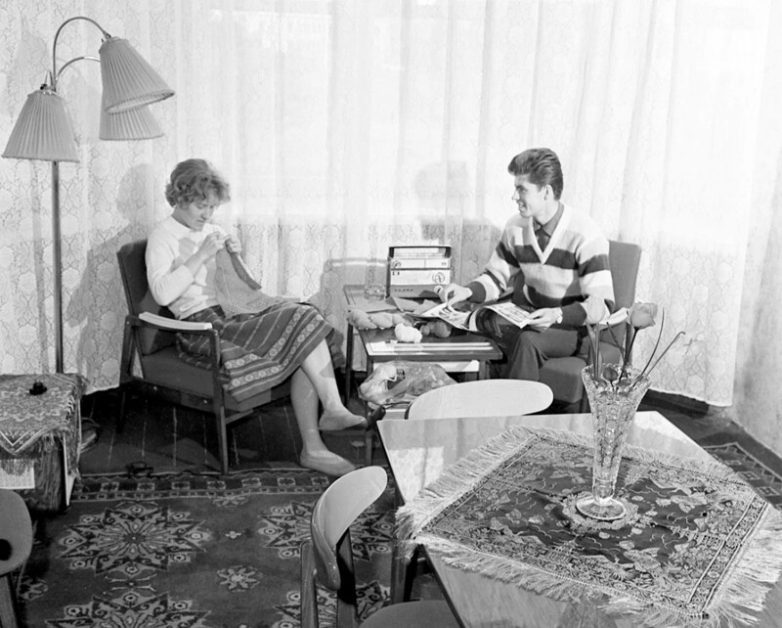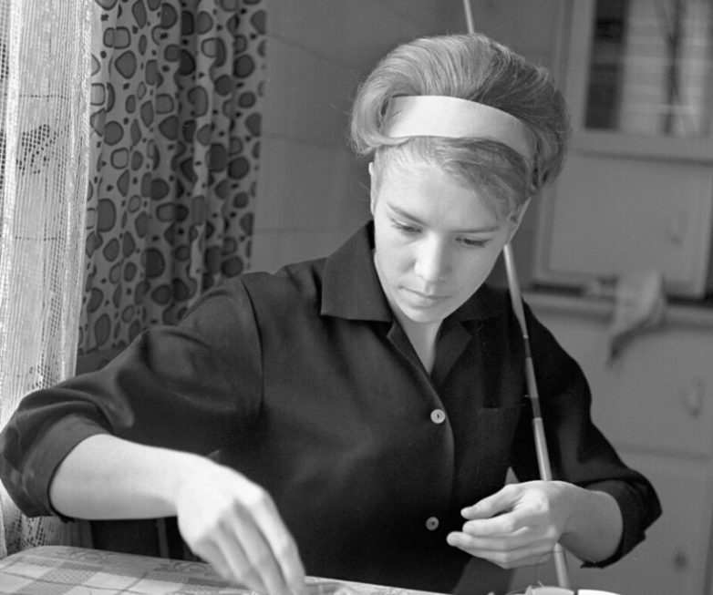Советская конькобежка Лидия Скобликова дома с семьей, 1964 год