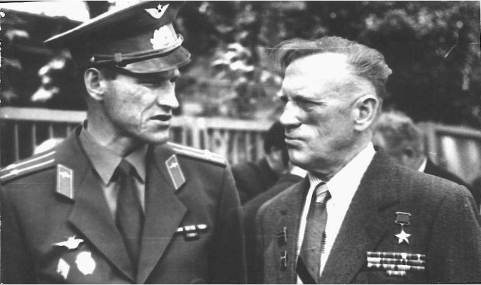 Мы в тот день возвращались домой, и вдруг рядом – «клюв». Удар! В кабину хлынул керосин. Понял, если не выключу двигатель, – сгорю. Выключил. Отвесно падаю с девяти тысяч. Через четыре километра вывел машину из пике, катапультировался. Подо мной – горы, снега почти нет. Мороз. Я мокрый, весь в керосине, а одет в брючки, рубашечку и китайский френч. Пока спускался, одеревенел. Удар о скалы был страшным, – позвоночник в трех местах треснул. (Учительская газета, №32 от 16 сентября 2005. „Атакует Щу Кин“)