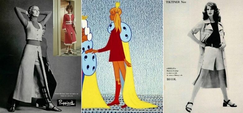 Красное трапециевидное мини-платье – это произведение Андре Куррежа. Потом ему стали подражать и красные «трапеции» появлялись во всех коллекциях.По словам одного из соавторов мульт-сказки Юрия Энтина, красное мини-платье Принцессы было свадебным платьем его жены Марины. И это ещё раз говорит о том, что формат оказался точным.