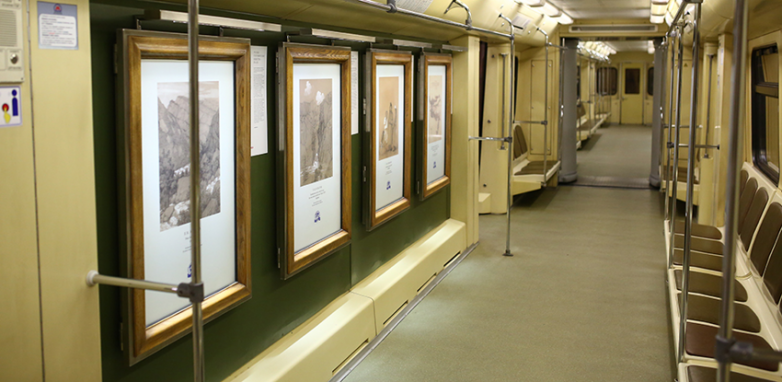 В вагонах есть фотохроника, плакаты и заметки из газет тех лет.