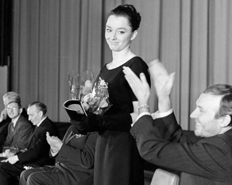 Анастасия Вертинская и Иннокентий Смоктуновский в кинотеатре «Россия» перед началом премьеры фильма «Гамлет», 1964 год