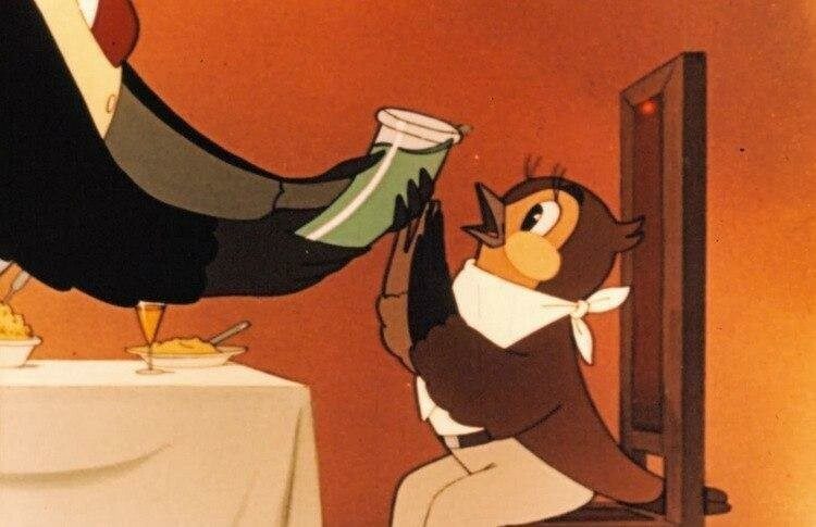 В ленте можно узнать русское застолье, неизбежно несущееся к катастрофе на рельсах алкоголизма. Очаровательно нарисованные птички сначала стыдят воробья за употребление безалкогольных напитков, затем спаивают и в итоге обвиняют во всех грехах.