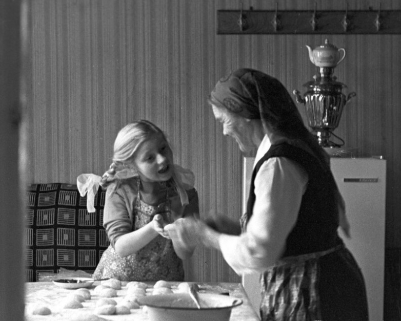 Школьница на зимних каникулах в гостях у бабушки, 1971 год