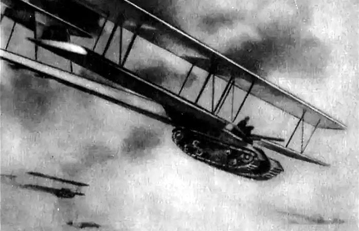 По замыслу конструктора, в небо танк должен был подниматься на отцепляемой бипланной сборке, а для полёта использовать самолётный пропеллер. На танк планировалось установить двигатель мощностью 750 лошадиных сил и 75-миллиметровое орудие, но проект застопорился, не реализованный даже наполовину. Предполагалось, что двигатель будет приводить в движение и ходовую часть, и пропеллер, вот только техническая реализация оказалась очень далеко от возможностей того времени.