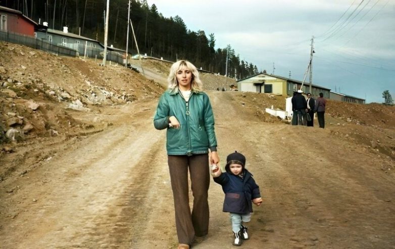 Воспитатель молодежных общежитий Серафима Романова на прогулке с сыном, 1976 год. Иркутская обл., пос. Звездный