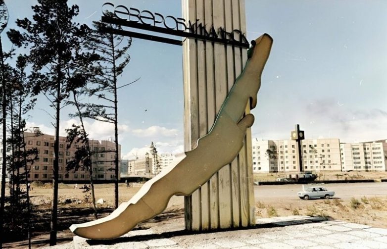 Стела у железнодорожного вокзала. Новый город Северобайкальск.
