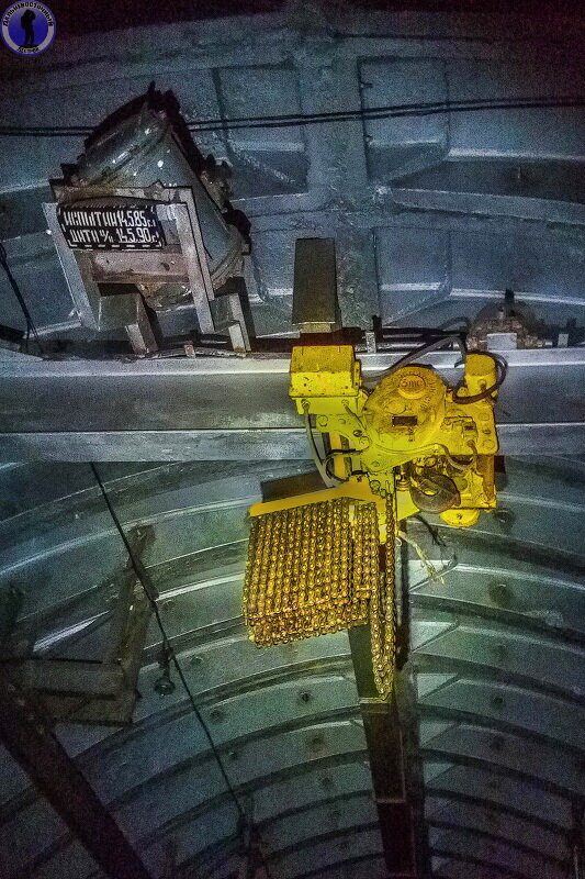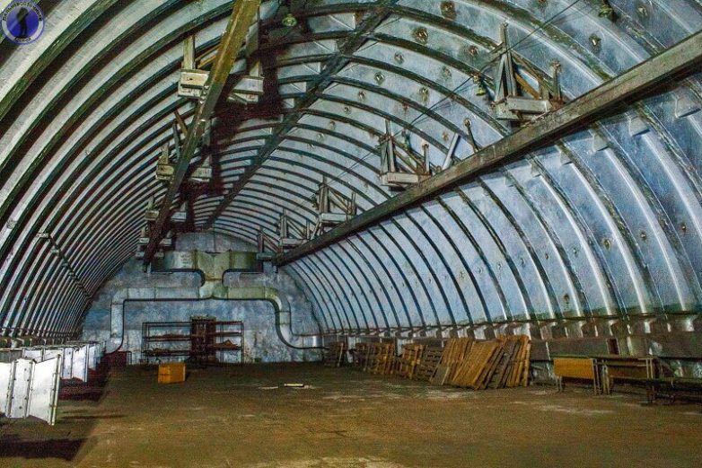А так выглядят сами залы пяти хранилищ, в которых и находилось опаснейшее для всего живого биологическое оружие. Эти залы были выкрашены в серебристый цвет (видимо для лучшего отражения холода) и оборудованы электроталями.