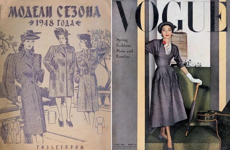 Платье из советского журнала мод и кадр из фильма «Весна» (1947).