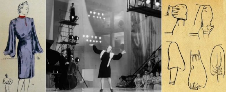 Разнообразны были и рукава. Так, Орлова (и её героиня!) носит тёмное платье с широким рукавом. Также популярны были рукава, расширяющиеся книзу. Именно такой фасон имелся в каждом из номеров «Журнала мод» — что называется casual и must have. Туфли – на высоких, но устойчивых каблуках. Кстати, всё тот же Диор и его коллега – «сапожник» Роже Вивье изобрели каблучок-шпильку в качестве антитезы «грубым» туфлям 1945-1947 годов.