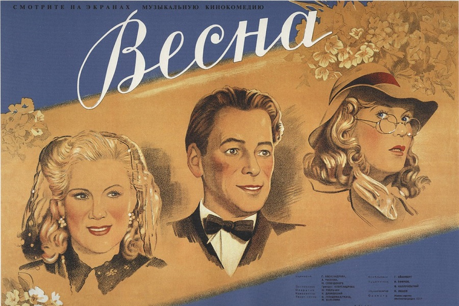 У того же Григория Александрова во всех довоенных фильмах и Любовь Орлова, и её партнёры по съёмочной площадке носят что-нибудь рваное или непрезентабельное – наша звезда то прислуга, то письмоносица на велосипеде, то замарашка. Вот в «Цирке» (1936) она – заокеанская дива, разве что. Тогда как «Весна» — это витрина и рекламный буклет.