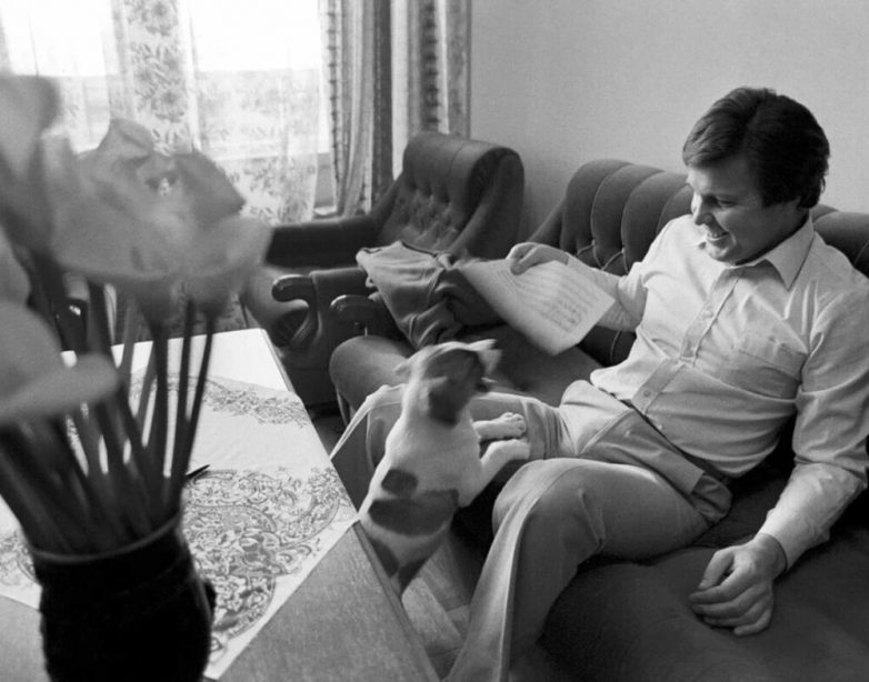 Андрей Мягков дома со своими живописными работами, 1978 год