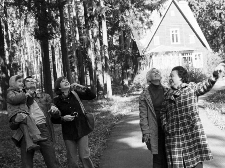 Георгий Тараторкин с женой и сыном на прогулке, 1978 год