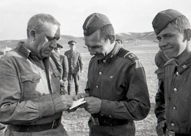 Юрий Никулин в перерыве съемок фильма «Они сражались за Родину», 1975 год