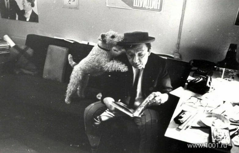 Юрий Никулин вместе со своей собакой Кутей в гардеробной московского цирка на Цветном бульваре