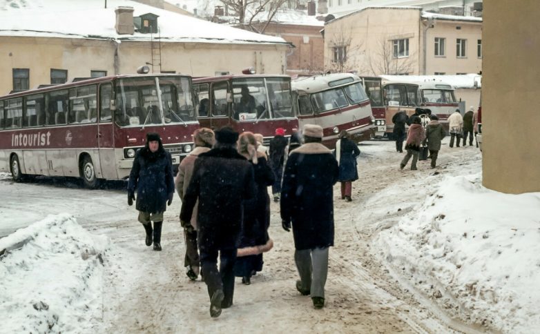 Стоянка туристических автобусов за гостиницей «Интурист».