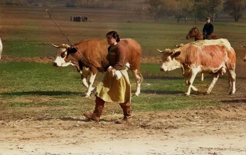 Девушка со стадом. Украинская ССР, Харьковская область, 1958 год.