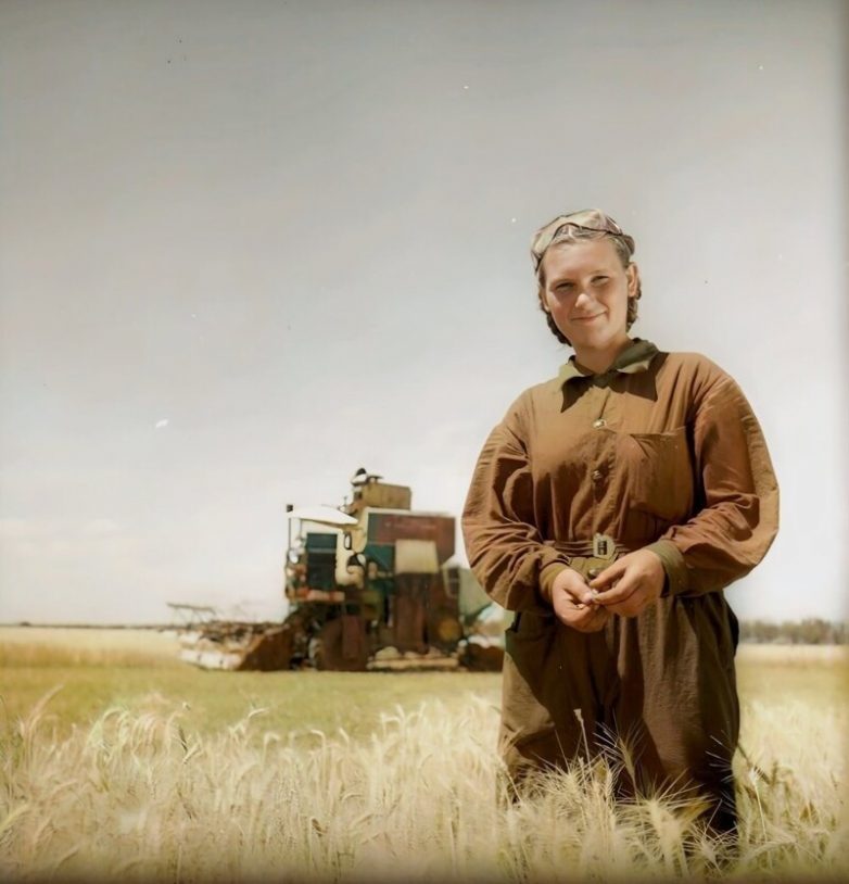 Девушка-комбайнер. Украинская ССР, 1950-е.