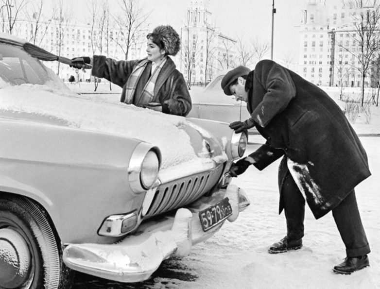 Киноактриса Людмила Хитяева с мужем перед выездом на прогулку в Подмосковье, 1963 год