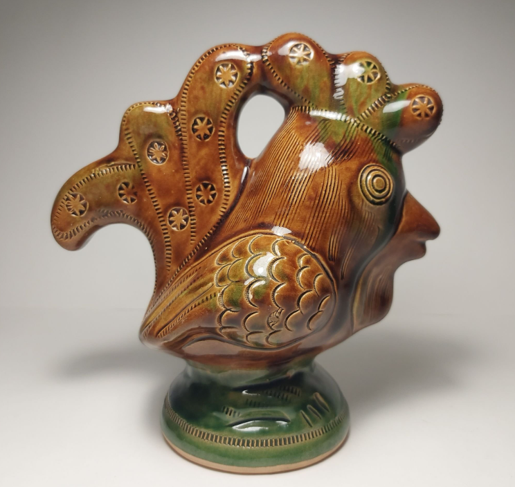 Особое место во всем разнообразии подобных изделий занимала скопинская керамика, даже не специалистами узнаваемая с первого взгляда благодаря затейливыми формами и декоративности расцветки. Вообще, продукция скопинской фабрики обычно вызывала самые противоречивые чувства: кому-то она казалась избыточно вычурной, а кто-то был без ума от всех этих фантастических форм и богатого орнамента.