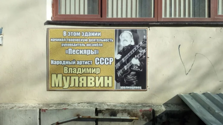 Памятная надпись на здании по адресу: бульвар Культуры, 3. Тут Мулявин начал заниматься творчеством