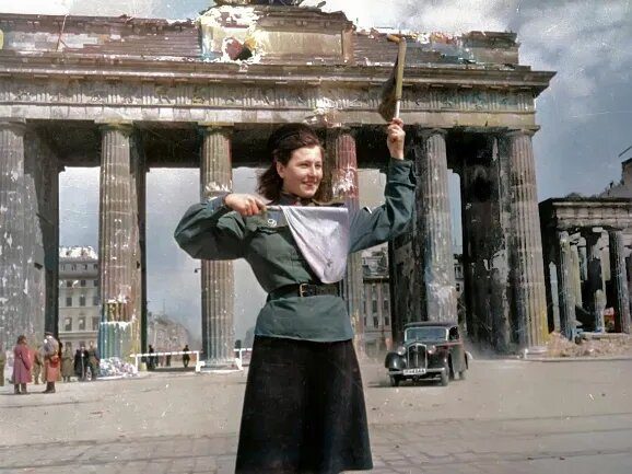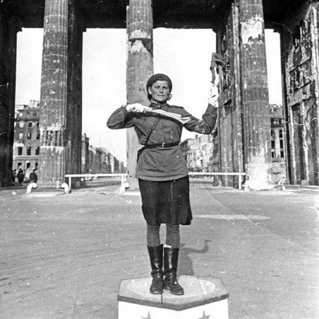 После победы 21-летнюю Мария поставили военным регулировщиком у Бранденбургских ворот в Берлине.