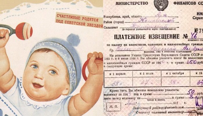 Помню такой налог — «за яйца». Справедливости ради надо сказать, что СССР не был первопроходцем, ранее подобный налог ввели Болгария и Италия, а в Германии до сих пор для бездетных более высокая налоговая ставка. Ну и… «что было о и будет» ))