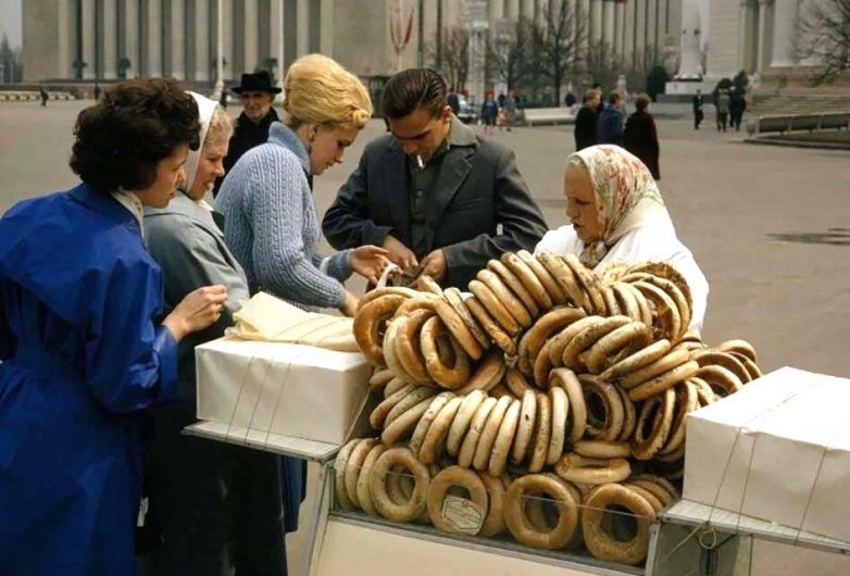 Уличная торговля бубликами в СССР. 1966 год. Фото Дина Конгера