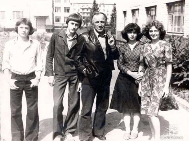 Михаил Ульянов со студентами Сланцевского индустриального техникума, 1980 год