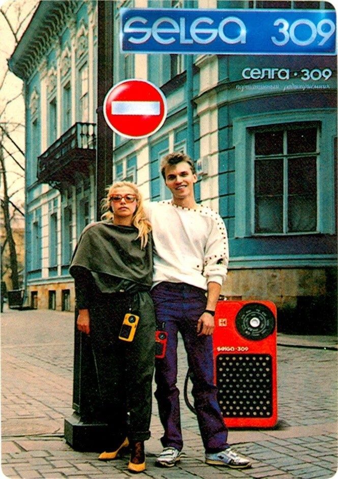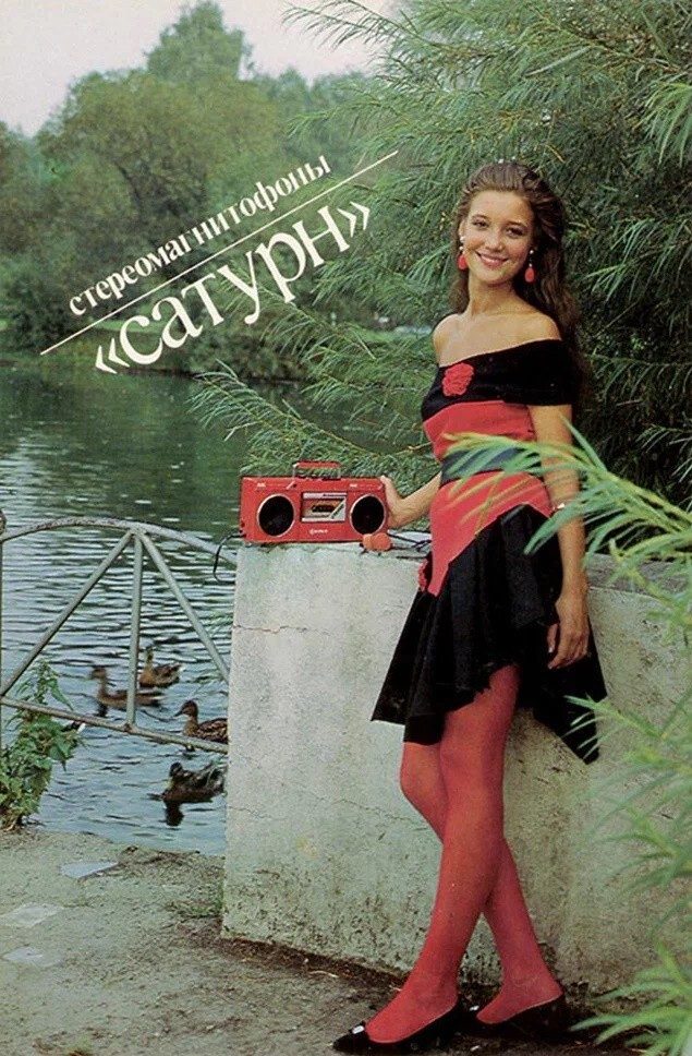 Джинсовая куртка и магнитофон «Весна» — коротко о мечтах молодежи 80-х в одном плакате.