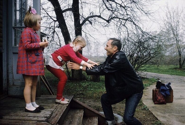 Василий Шукшин с дочерьми Олей и Машей