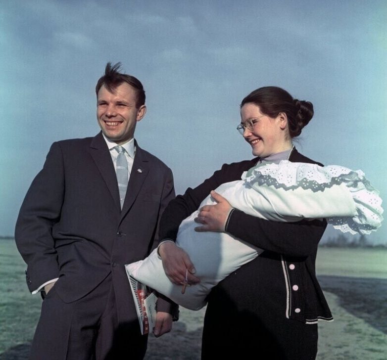 Юрий Гагарин с женой Валентиной и дочерью Галей