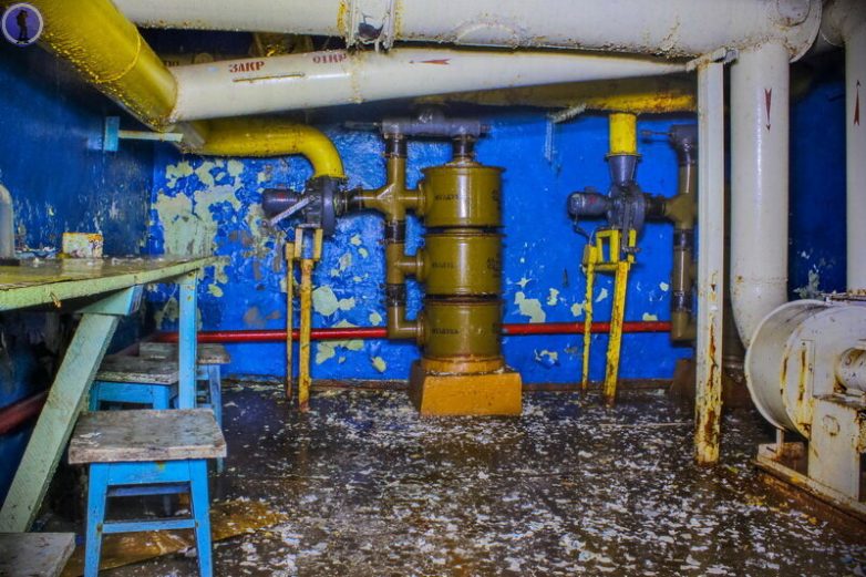 Где сохранилось две фильтро-вентиляционных установки со столбиками фильтров, предназначавшихся для очистки воздуха от радиоактивной пыли. В качестве привода в них использовались электро-ручные вентиляторы ЭРВ-49, работавшие как от мотора, так и от ручной тяги.