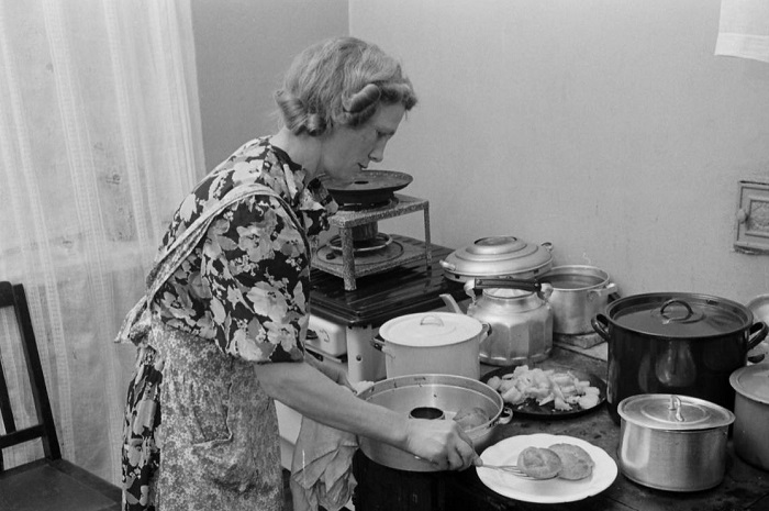 В советское время декретов как таковых не было. Мамы сидели с малышами в среднем до четырех-пяти месяцев, после чего выходили на работу, оставляя кроху с бабушками и дедушками. Но восьмичасовой рабочий день не являлся причиной для того, чтобы игнорировать быт. Хорошая хозяйка должна была прийти домой и приготовить ужин на всю семью. А так как полуфабрикатов и различных сервисов по доставке еды тогда не было, приходилось тратить около двух-трех часов, чтобы подать к столу вкусные блюда. И не стоит забывать, что на этом бытовые хлопоты не заканчивались – после ужина нужно было перемыть всю посуду, потому что утром перед работой на это не хватало времени.