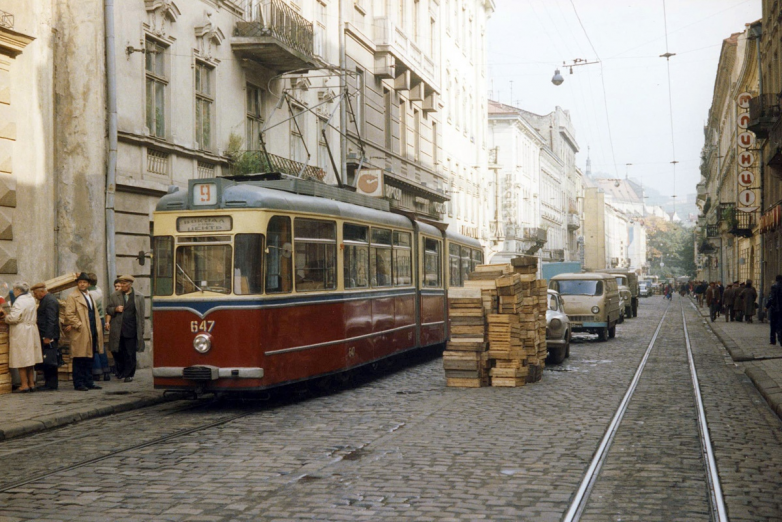 Львов Украинской СССР, Октябрьская улица, трамвай «Гота» G4-61, 1980 год.