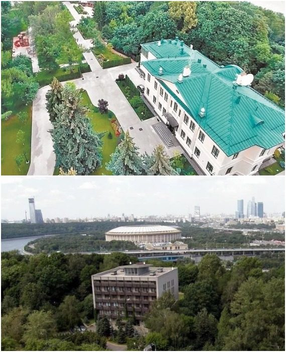 Особняк, где в свое время жил Никита Хрущев и правительственный поселок на Воробьевых горах (Москва).