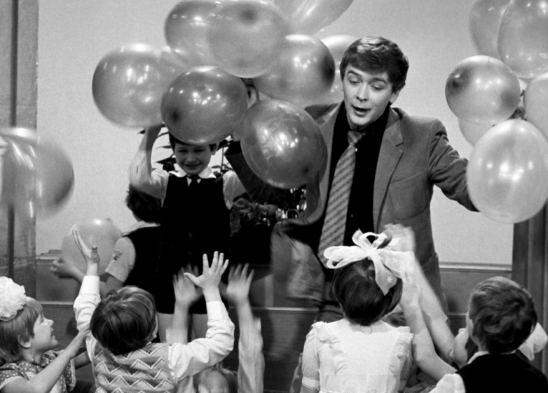 »Голубой огонек", посвященной международному женскому дню 8 марта. Ведущий телепередачи артист Сергей Проханов с детворой. 1981 год.