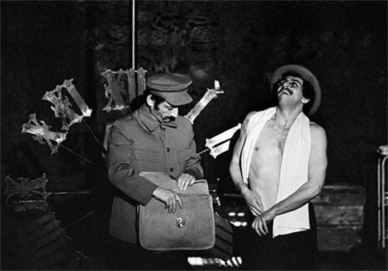 Семен Фарада и Иван Дыховичный в спектакле Театра на Таганке „Мастер и Маргарита“. 1977 год.