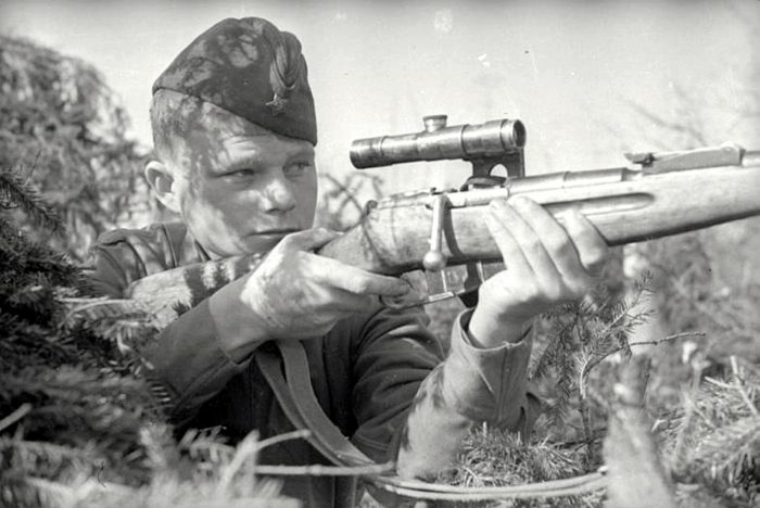 К концу 19 века военные инженеры разработали качественный оптический прицел. Первыми за новые перспективы ухватились немцы, и уже в 1915-м каждая рота германской армии располагала меткими стрелками. В этом же направлении усердствовал и военпром, произведя за год свыше 20 тысяч винтовок. На полях сражений Первой мировой обученные немецкие снайперы не давали проходу британским и французским солдатам, которые не рисковали даже высунуться из окопа. Несмотря на тот успех, гитлеровская тактика Второй мировой стала иной. Фюрер развязал блицкриг, рассчитывая сыграть на молниеносной войне. В этой концепции танковых клиньев при поддерживающей артиллерии снайперам поначалу места не было. А вот Красная Армия формировалась иначе. Быть метким стрелком в Советском Союзе было престижно еще задолго до войны. Для этого создавались профессиональные движения и общества. Стрелял народ везде – от школ до парков культуры. Так что с первых дней войны армия не испытывала дефицита в снайперах.