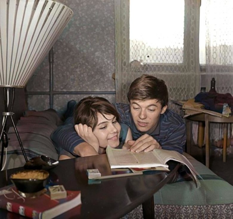 Супружеская пара — актёры В. А. Малявина и А. В. Збруев в домашней обстановке, Москва. 1960-е г