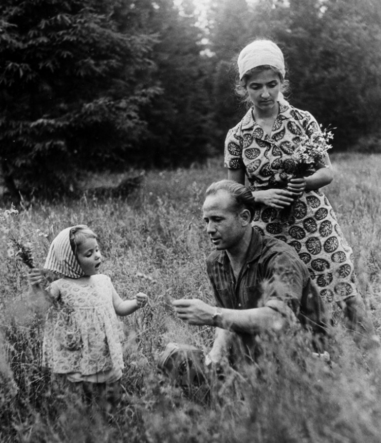 Летчик-космонавт Леонов Алексей с женой Светланой и дочерью Викторией в Подмосковье, 1965 год