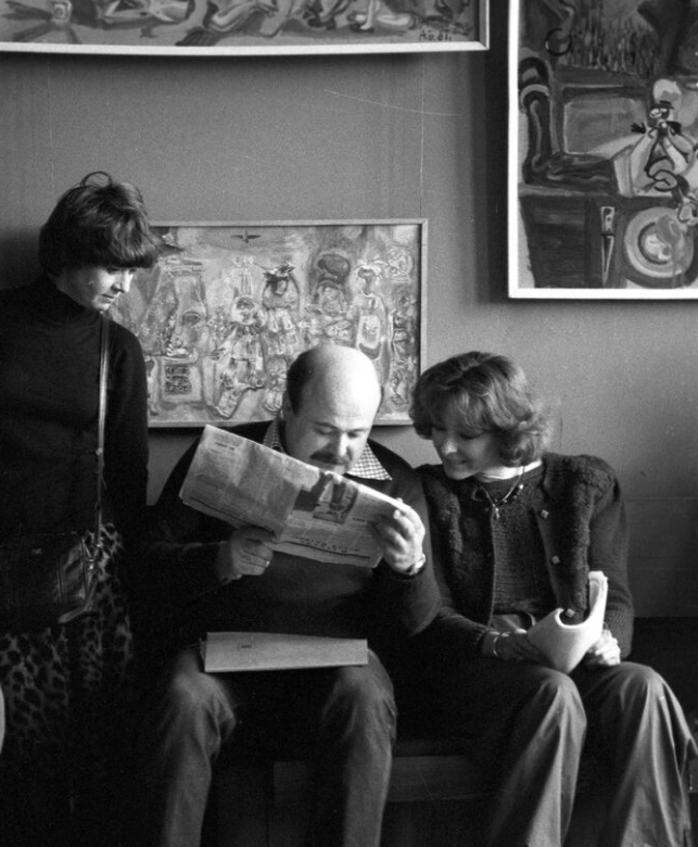 Актер Александр Калягин с коллегами в перерыве между репетициями, 1982 год
